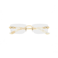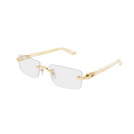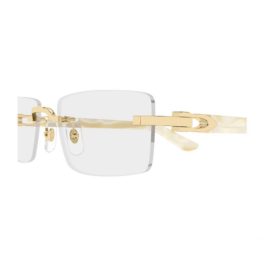 "Die CT0581O - Moderne und doch edle Neugestaltung des historischen Décor C-Bügels in einer Kombiversion. Alltagstaugliche rechteckige Form in randloser Bauweise. Das ikonische Décor C-Detail wird als ästhetisches und funktionales Element des Scharniers perfekt in den Acetat-Bügel integriert."